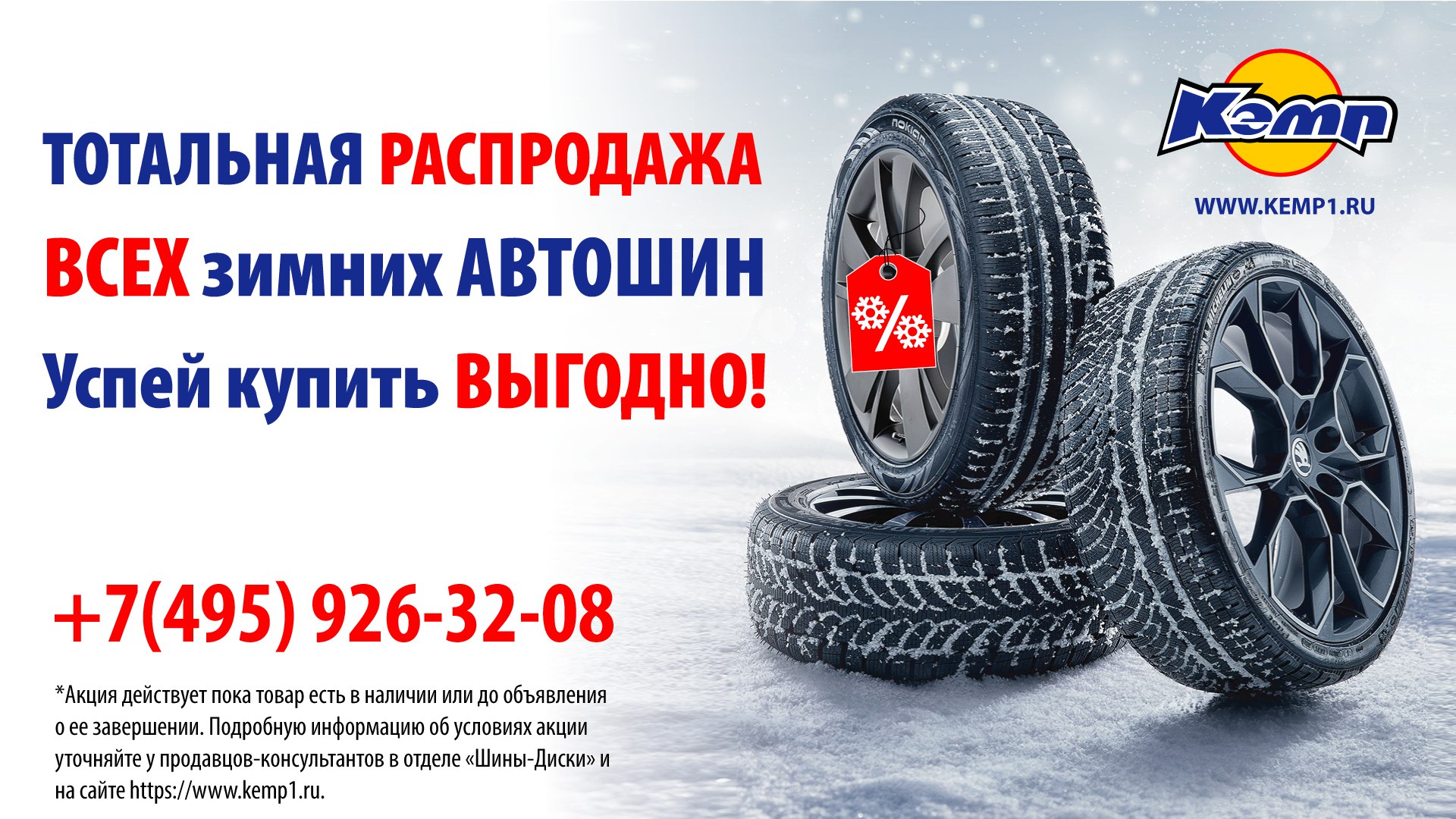 С 15 января в магазинах «КЭМП» стартует тотальная РАСПРОДАЖА всех зимних автошин.