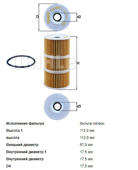 Фильтр масляный MAHLE KNECHT OX389/1D