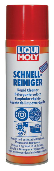Быстродействующий аэрозольный очиститель LIQUI MOLY Schnell‑Reiniger (арт. 3318) предназначен для обезжиривания и глубокой очистки деталей автомобиля. Эффективно удаляет масляные и жировые загрязнения, смолы, густую смазку и другие техногенные отложения.
