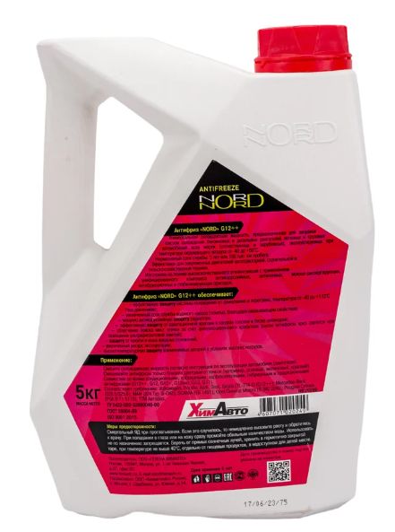 Антифриз NORD красный — это высококачественная охлаждающая жидкость, изготовленная на основе этиленгликоля по лобридной технологии. Все антифризы NORD содержат дополнительный комплект присадок для мощной защиты от кавитации. Этот антифриз предназначен для заправки систем охлаждения автомобильных двигателей всех марок, эксплуатируемых при температуре окружающего воздуха от −40 до +50 °C. Он особенно эффективен для мощных дизельных и высокооборотных бензиновых двигателей, а также для двигателей из лёгких сплавов. Антифриз NORD соответствует стандартам G12++ и G40 (BASF) и международным стандартам ASTM, BS, Japanese, Korean и SAE. Его нормативный срок службы составляет 5 лет или 180 тыс. км пробега, и он совместим со всеми силикатными, карбоксилатными и гибридными антифризами.
