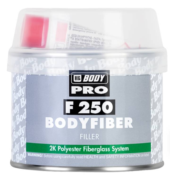 Обеспечьте прочный и долговечный ремонт кузова с профессиональной полиэфирной шпатлёвкой BODY F250 Fiber со стекловолокном! Усиленная структура с армирующими волокнами позволяет эффективно устранять глубокие дефекты - от вмятин до сквозных коррозионных повреждений.