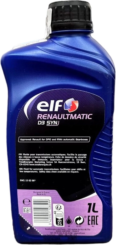 Масло трансмиссионное ELF RENAULTMATIC D3 SYN 1л 213873 - это специально разработанное масло для автоматических трансмиссий легковых автомобилей, особенно подходящее для автомобилей марки Renault.