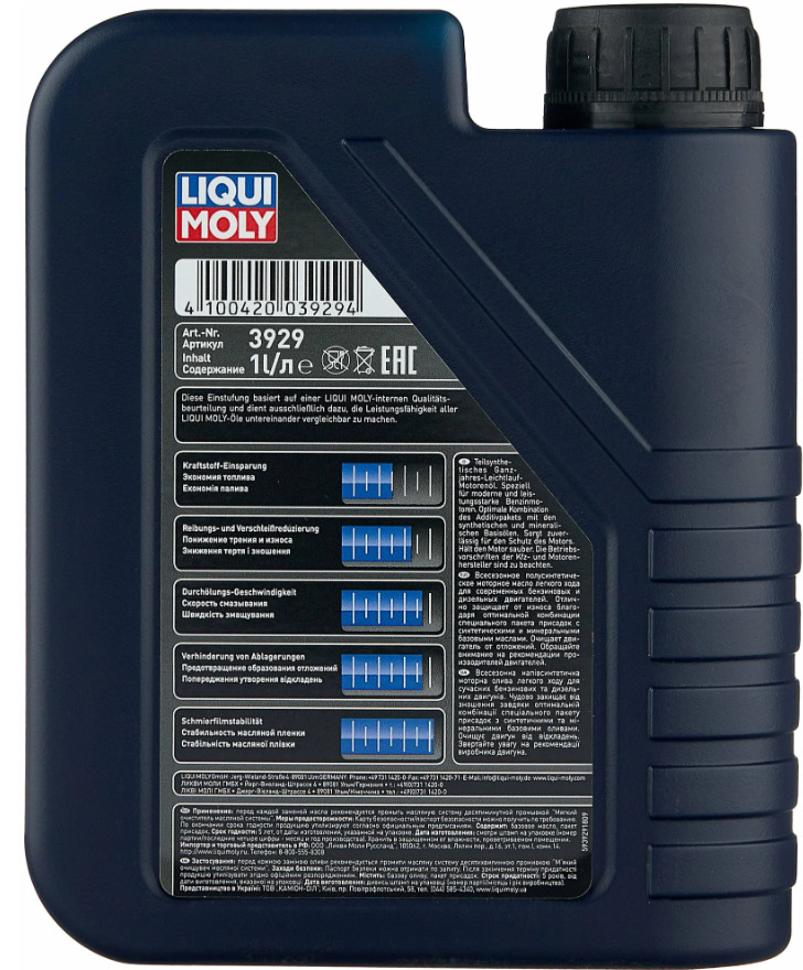 Liqui Moly Optimal 10W-40 -полусинтетическое масло в литровой упаковке. Создано для поддержания работоспособности двигателей с пробегом. Его эффективные моющие присадки постепенно очищают внутренние поверхности от накопившихся отложений, не забивая при этом масляные каналы. Противоизносные компоненты защищают кулачки распредвалов и коренные вкладыши. Оптимальный вариант для долива в двигатели, где используется полусинтетика 10W-40, а также для поддержания уровня после незначительного расхода масла на угар. |