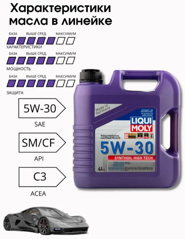 Liqui Moly Synthoil High Tech 5W-30 - полностью синтетическое масло премиум-класса на основе 100% ПАО. Продукт для тех, кто не признает компромиссов в защите двигателя. Обеспечивает максимальную стабильность вязкостно-температурных характеристик, не теряя своих свойств при длительных экстремальных нагрузках. Снижает внутреннее трение, что напрямую влияет на мощность и отзывчивость двигателя. Идеально для спортивных автомобилей, тюнинга и эксплуатации в тяжелых условиях (горные дороги, трек). Сохраняет двигатель исключительно чистым. |