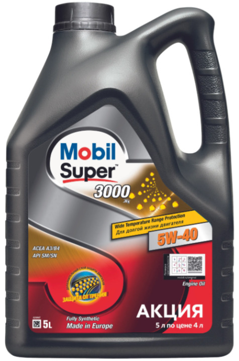 Моторное масло Mobil Super 3000 5W40- это высококачественное синтетическое масло, разработанное для современных бензиновых и дизельных двигателей легковых автомобилей и легкого коммерческого транспорта.Оно обеспечивает превосходную защиту двигателя, чистоту и повышенную эффективность работы, а также способствует увеличению срока службы двигателя.
