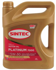 SINTEC Platinum 7000 5W-30- это полностью синтетическое моторное масло премиум-класса, разработанное с применением передовых технологий защиты двигателя. Масло специально создано для современных высоконагруженных бензиновых и дизельных двигателей легковых автомобилей, включая моторы с турбонаддувом и непосредственным впрыском топлива.