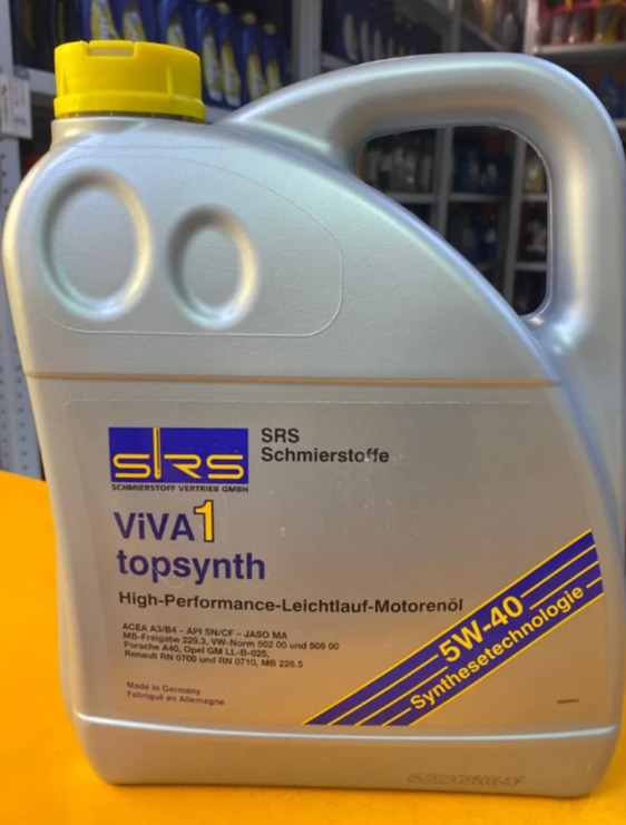 Масло моторное SRS VIVA 1 topsynth 5W40 синтетика, 4 литра VIVA 1 topsynth 4л синтетика 7382