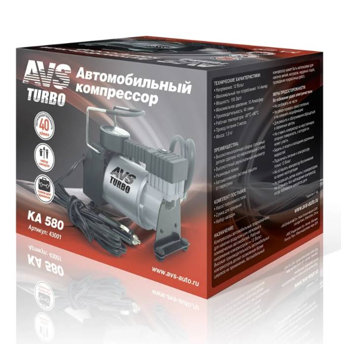 Подробнее о шиномонтажеКомпрессор АВТО AVS KA-580— это мощное и надёжное устройство, предназначенное для накачивания шин автомобилей, мотоциклов и велосипедов, а также для решения других задач, связанных с подачей сжатого воздуха.С его помощью вы сможете быстро и удобно регулировать давление в шинах, обеспечивать работу пневмоинструментов или накачивать мячи и кровати.