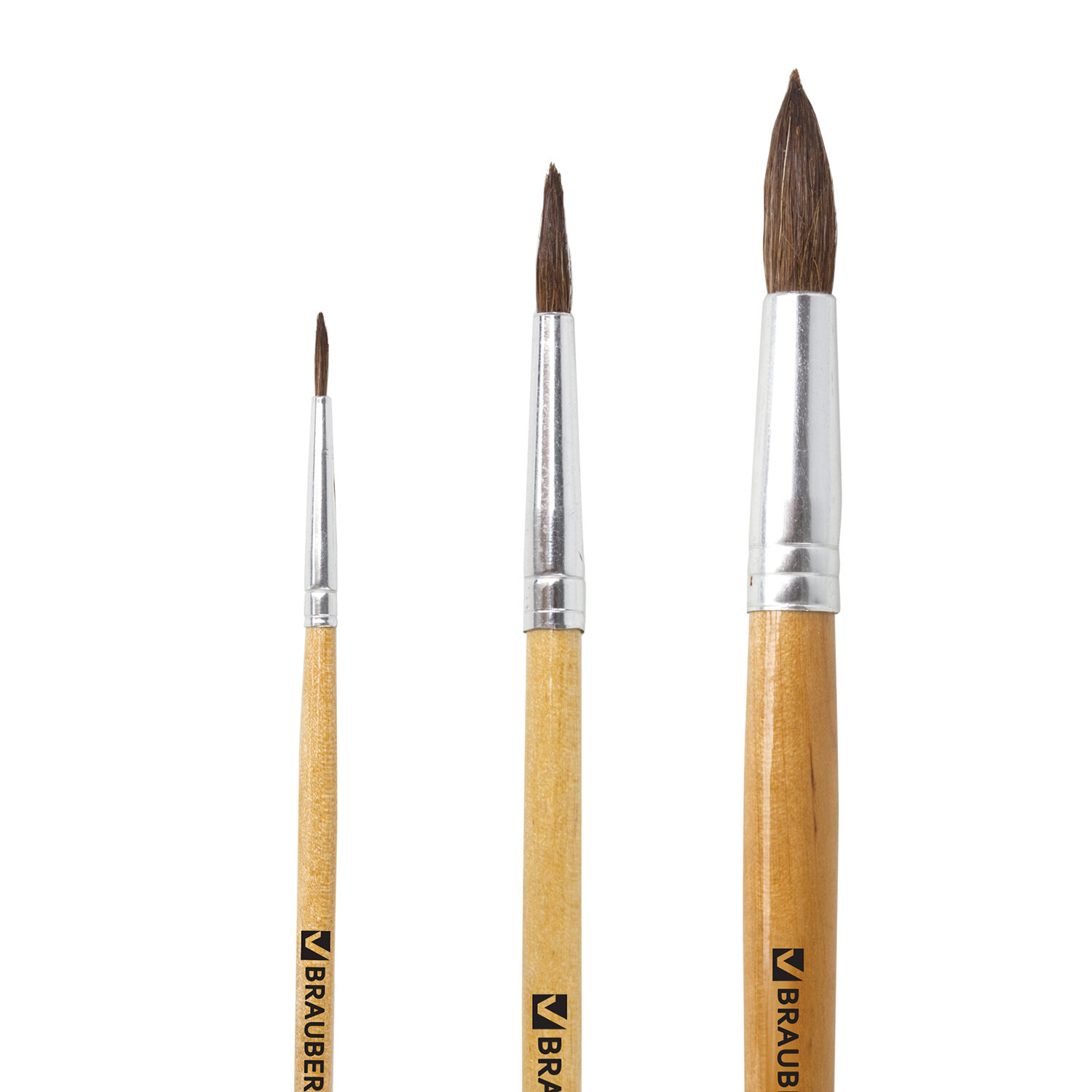 Набор из трех кистей разного размера BRAUBERG позволяет начинающим художникам решать любые творческие задачи в детском саду, школе и дома.