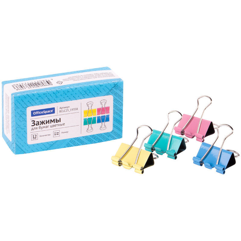 Купить Зажимы для бумаг BCLC25_19358 25мм OfficeSpace 12шт цветные