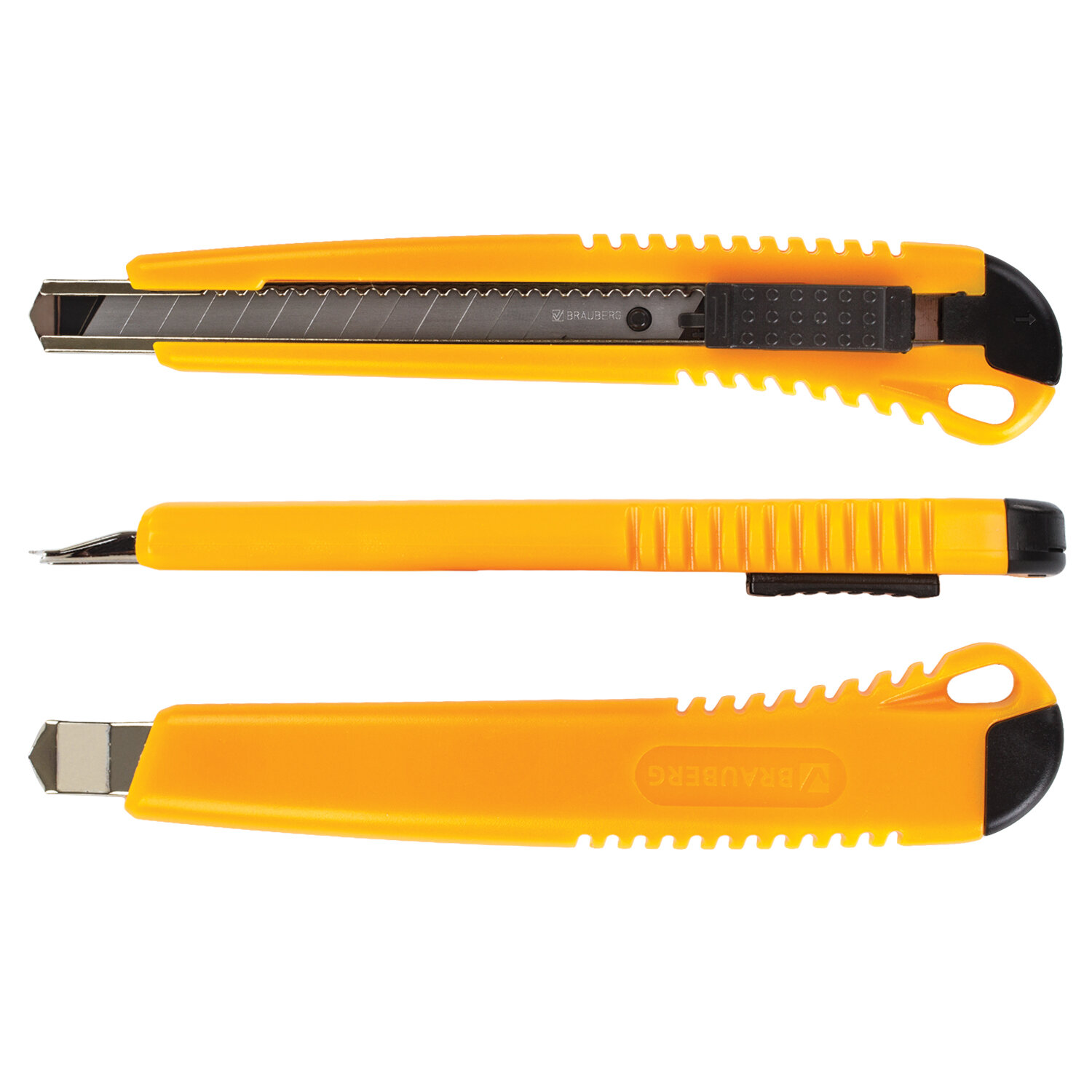 Канцелярский нож BRAUBERG «Standard» – инструмент, незаменимый как в офисе, так и в быту. С его помощью можно аккуратно разрезать бумагу, картон и т.д. Подходит для периодических нерегулярных задач, но также справляется с большим объемом материала.За счет автофиксатора канцелярский нож удерживает лезвие шириной 9 мм в нужном положении, что особенно важно при длительной работе. Если конец лезвия затупился, его всегда можно удалить, аккуратно отделив по контрольной линии. Дополнительные лезвия приобретаются отдельно. Жесткие металлические направляющие оберегают руки от случайного соприкосновения с острым режущим краем. Не нанесут вреда при соблюдении стандартных правил техники безопасности. Для удобство имеется отверстие для подвеса. Упаковка - блистер с европодвесом. Поставляется в нескольких вариантах цвета (без возможности выбора).
