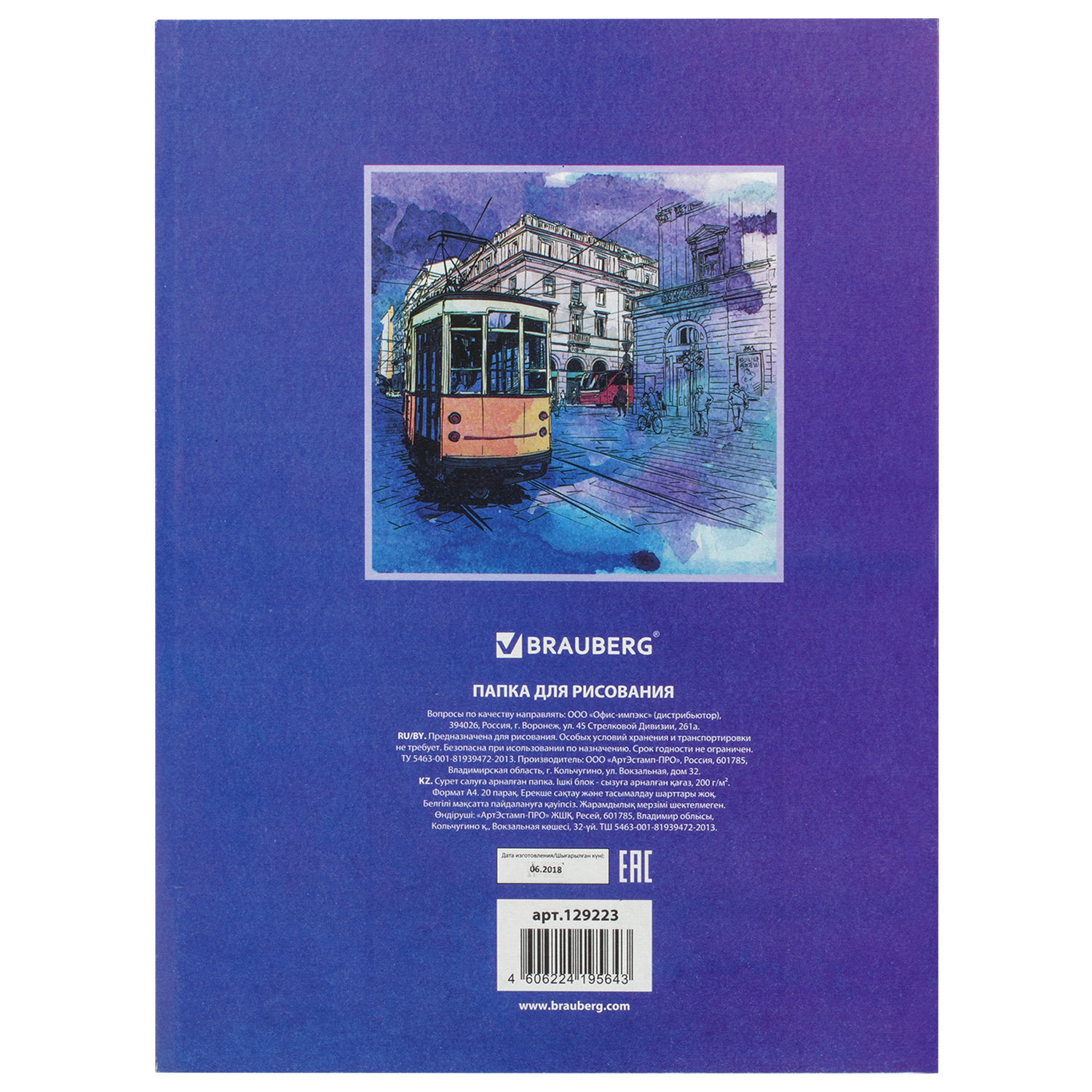 Папка содержит плотные, гладкие листы, хорошо подходящие именно для сухих техник (карандаши, фломастеры, графитные мелки, линеры и т.д.). Подойдет и для маркеров, но нужно будет подкладывать что-то под лист, на котором рисуете.<br>Папка содержит плотные, гладкие листы, хорошо подходящие именно для сухих техник (карандаши, фломастеры, графитные мелки, линеры и т.д.). Подойдет и для маркеров, но нужно будет подкладывать что-то под лист, на котором рисуете.Содержит 20 листов плотностью 200 г/м2 формата А4 (210х297 мм). Листы из качественной офсетной бумаги устойчивы к истиранию. Обложка выполнена из импортного мелованного картона.<br>Папка содержит плотные, гладкие листы, хорошо подходящие именно для сухих техник (карандаши, фломастеры, графитные мелки, линеры и т.д.). Подойдет и для маркеров, но нужно будет подкладывать что-то под лист, на котором рисуете.Содержит 20 листов плотностью 200 г/м2 формата А4 (210х297 мм). Листы из качественной офсетной бумаги устойчивы к истиранию. Обложка выполнена из импортного мелованного картона.Тип товара: бумага в папке. Серия: нет. Вид работ: для эскизов. Количество листов: 20. Формат: А4. Ширина: 297 мм. Длина: 210 мм. Обложка: картонная. Внутренний блок: плотная бумага. Цвет внутреннего блока: белый. Плотность внутреннего блока: 200 г/м2. Тип скрепления: нет. Без кислот: да Бренд - BRAUBERG. Производитель - Россия. Артикул - 129223. Штрихкод - 4606224195643