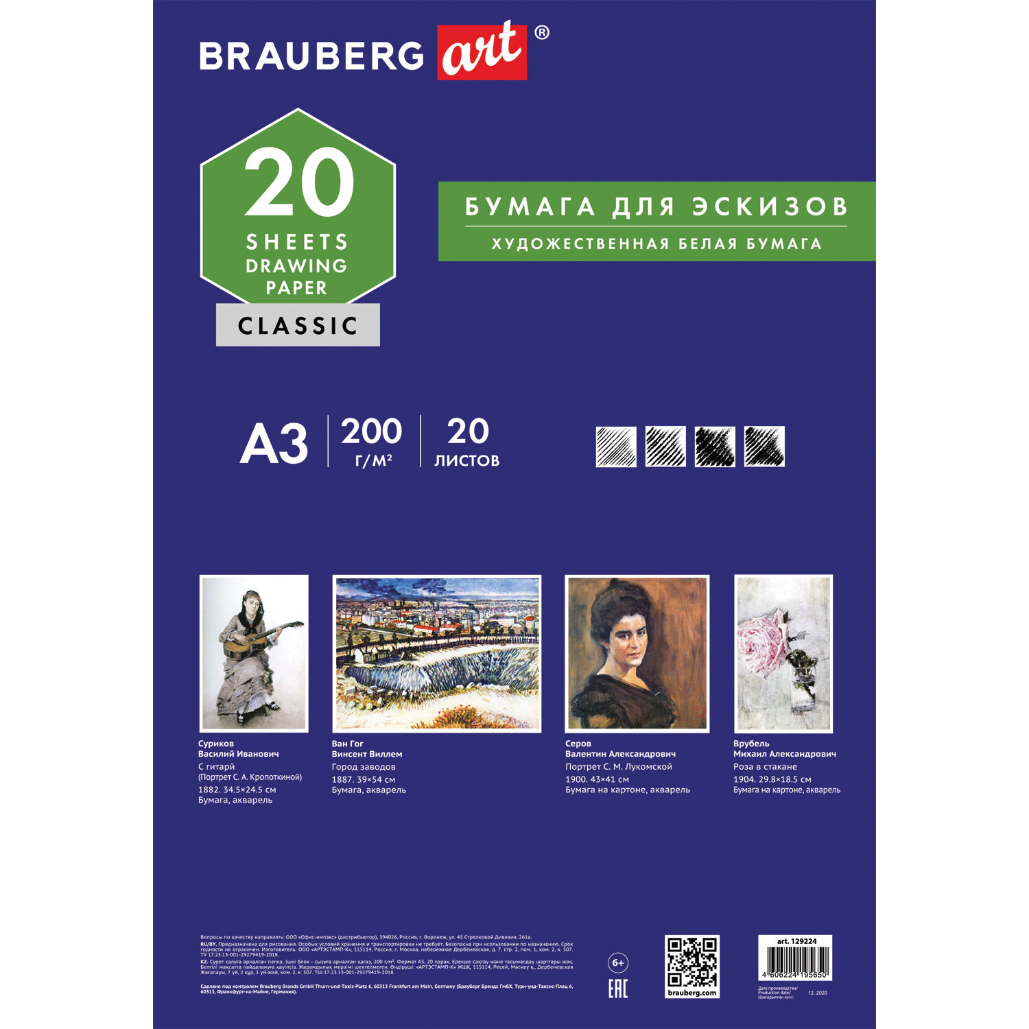 Папка содержит плотные, гладкие листы, хорошо подходящие именно для сухих техник (карандаши, фломастеры, графитные мелки, линеры и тд). Подойдет и для маркеров, но нужно будет подкладывать что-то под лист, на котором рисуете.<br>Папка содержит плотные, гладкие листы, хорошо подходящие именно для сухих техник (карандаши, фломастеры, графитные мелки, линеры и тд). Подойдет и для маркеров, но нужно будет подкладывать что-то под лист, на котором рисуете.Содержит 20 листов плотностью 200 г/м2 формата А3 (297х420 мм). Листы из качественногой офсетной бумаги устойчивы к истиранию. Обложка выполнена из импортного мелованного картона.<br>Папка содержит плотные, гладкие листы, хорошо подходящие именно для сухих техник (карандаши, фломастеры, графитные мелки, линеры и тд). Подойдет и для маркеров, но нужно будет подкладывать что-то под лист, на котором рисуете.Содержит 20 листов плотностью 200 г/м2 формата А3 (297х420 мм). Листы из качественногой офсетной бумаги устойчивы к истиранию. Обложка выполнена из импортного мелованного картона.Тип товара: бумага в папке. Серия: нет. Вид работ: для эскизов. Количество листов: 20. Формат: А3. Ширина: 420 мм. Длина: 297 мм. Обложка: картонная. Внутренний блок: плотная бумага. Цвет внутреннего блока: белый. Плотность внутреннего блока: 200 г/м2. Тип скрепления: нет. Без кислот: да Бренд - BRAUBERG. Производитель - Россия. Артикул - 129224. Штрихкод - 4606224195650