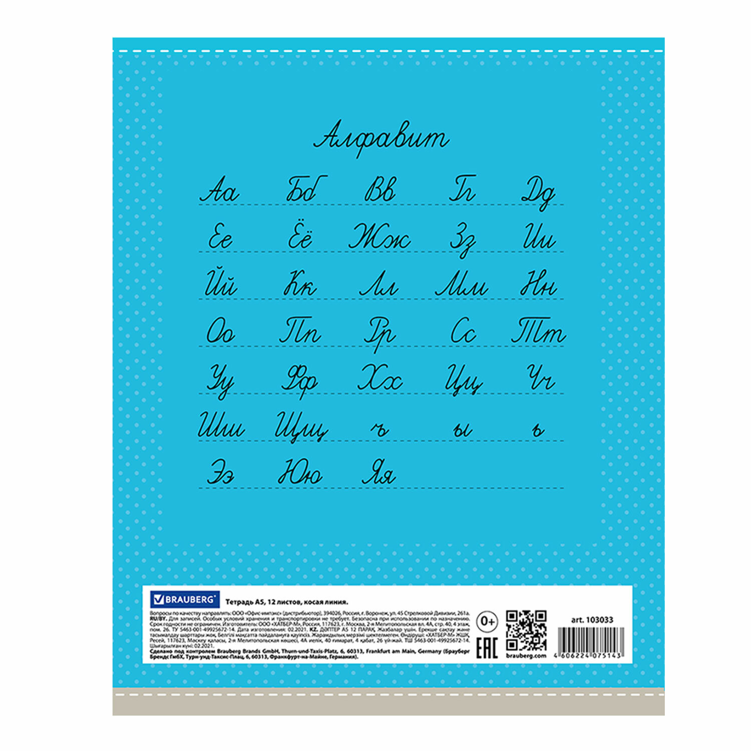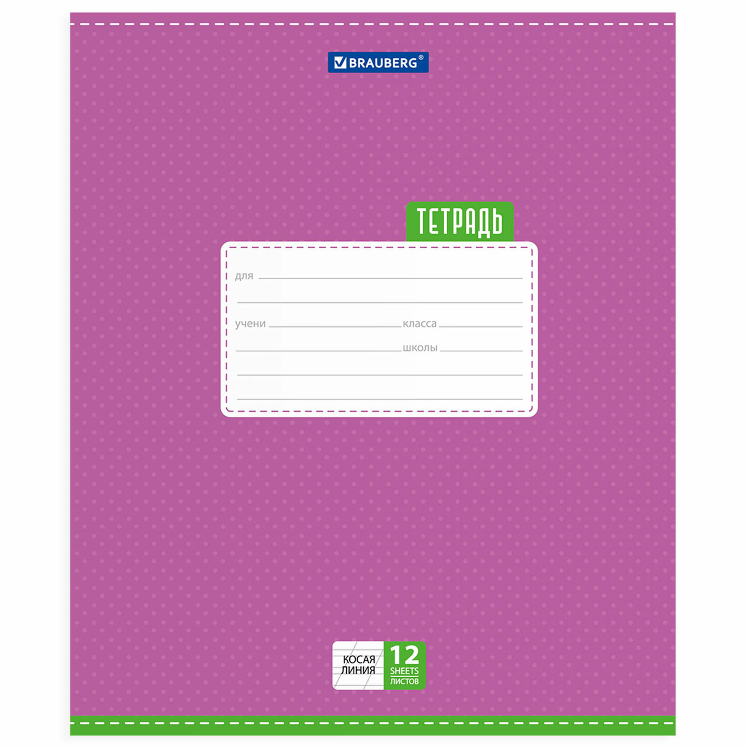 Школьная тетрадь BRAUBERG с яркой обложкой насыщенного цвета идеально подходит для всех видов пишущих принадлежностей, включая гелевые, капиллярные и перьевые ручки: написанное на одной стороне не просвечивает на другой.<br>Школьная тетрадь BRAUBERG с яркой обложкой насыщенного цвета идеально подходит для всех видов пишущих принадлежностей, включая гелевые, капиллярные и перьевые ручки: написанное на одной стороне не просвечивает на другой.Внутренний блок плотностью 60 г/м2 из офсетной бумаги содержит 12 листов. Линовка - косая линия с полями. Обложка изготовлена из импортного мелованного картона. Скрепка надежно скрепляет листы между собой.<br>Школьная тетрадь BRAUBERG с яркой обложкой насыщенного цвета идеально подходит для всех видов пишущих принадлежностей, включая гелевые, капиллярные и перьевые ручки: написанное на одной стороне не просвечивает на другой.Внутренний блок плотностью 60 г/м2 из офсетной бумаги содержит 12 листов. Линовка - косая линия с полями. Обложка изготовлена из импортного мелованного картона. Скрепка надежно скрепляет листы между собой.Линовка блока: косая линия. Количество листов: 12. Обложка: мелованный картон. Формат: А5. Наличие полей: да. Тип скрепления: скоба. Внутренний блок: офсет. Плотность внутреннего блока: 60 г/м2. Белизна: 100 %. Однотонный дизайн обложки: да. Количество дизайнов в упаковке: 5. Длина: 205 мм. Ширина: 165 мм Бренд - BRAUBERG. Производитель - Россия. Артикул - 103033. Штрихкод - 4606224075143