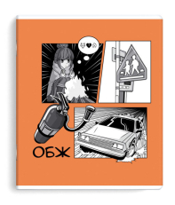 Тетрадь предметная. "АНИМЕ" ОБЖ. Формат А5+. Количество листов - 48 л. Тип обложки - мягкий переплёт (2 скобы). Материал обложки - мелованный картон 190 г/м². Кругление углов: есть. Печать обложки: полноцветная печать. Отделка обложки: выборочный ТВИН УФ-лак. Цвет внутреннего блока - белый офсет. Плотность бумаги 60 г/м². Красочность блока: печать в две краски. Дизайн блока: клетка. Справочный материал: Подкладные листы со справочной информацией. Индивидуальная упаковка: нет.