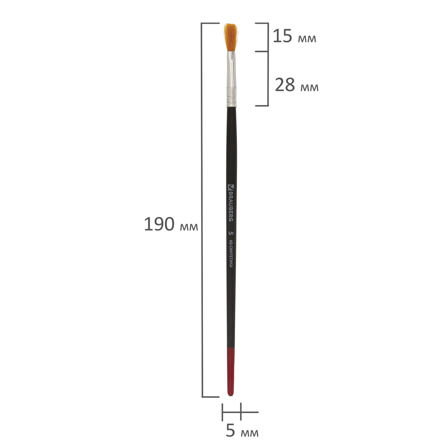 Кисть BRAUBERG № 5 подходит для работы с акварелью, гуашью, тушью, акрилом, а также для прорисовывания различных деталей рисунка. Снабжена защитным пластиковым колпачком. Кисть BRAUBERG № 5 подходит для работы с акварелью, гуашью, тушью, акрилом, а также для прорисовывания различных деталей рисунка. Снабжена защитным пластиковым колпачком.Кисть из синтетического ворса эластичная, не распадается, хорошо держит форму, долговечна и надежна. Кисть № 5 позволит прорисовывать мелкие детали. Деревянную крашеную рукоятку кисти удобно держать в руке. Кисть BRAUBERG № 5 подходит для работы с акварелью, гуашью, тушью, акрилом, а также для прорисовывания различных деталей рисунка. Снабжена защитным пластиковым колпачком.Кисть из синтетического ворса эластичная, не распадается, хорошо держит форму, долговечна и надежна. Кисть № 5 позволит прорисовывать мелкие детали. Деревянную крашеную рукоятку кисти удобно держать в руке.Количество кистей в наборе: 1 шт.. Ворс: синтетика. Номер кисти: 5. Тип кисти: плоская. Ручка: укороченная. Упаковка: нет Бренд - BRAUBERG. Производитель - Китай. Артикул - 200213. Штрихкод - 4606224045429