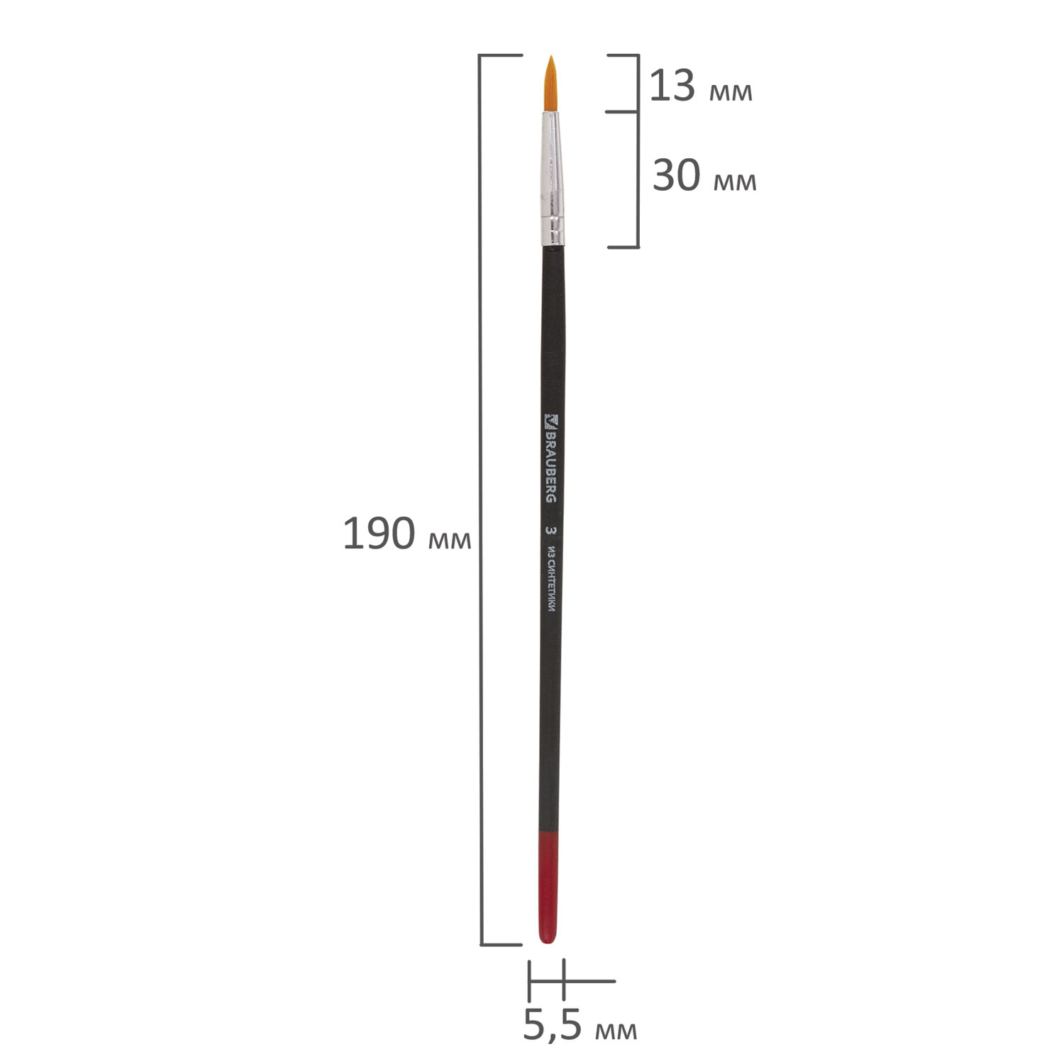 Кисть BRAUBERG № 3 подходит для работы с акварелью, гуашью, тушью, акрилом, а также для прорисовывания различных деталей рисунка. Снабжена защитным пластиковым колпачком. Кисть BRAUBERG № 3 подходит для работы с акварелью, гуашью, тушью, акрилом, а также для прорисовывания различных деталей рисунка. Снабжена защитным пластиковым колпачком.Кисть из синтетического ворса эластичная, не распадается, хорошо держит форму, долговечна и надежна. Кисть № 3 позволит прорисовывать мелкие детали. Деревянную крашеную рукоятку кисти удобно держать в руке. Кисть BRAUBERG № 3 подходит для работы с акварелью, гуашью, тушью, акрилом, а также для прорисовывания различных деталей рисунка. Снабжена защитным пластиковым колпачком.Кисть из синтетического ворса эластичная, не распадается, хорошо держит форму, долговечна и надежна. Кисть № 3 позволит прорисовывать мелкие детали. Деревянную крашеную рукоятку кисти удобно держать в руке.Количество кистей в наборе: 1 шт.. Ворс: синтетика. Номер кисти: 3. Тип кисти: круглая. Ручка: укороченная. Упаковка: нет Бренд - BRAUBERG. Производитель - Китай. Артикул - 200209. Штрихкод - 4606224045382