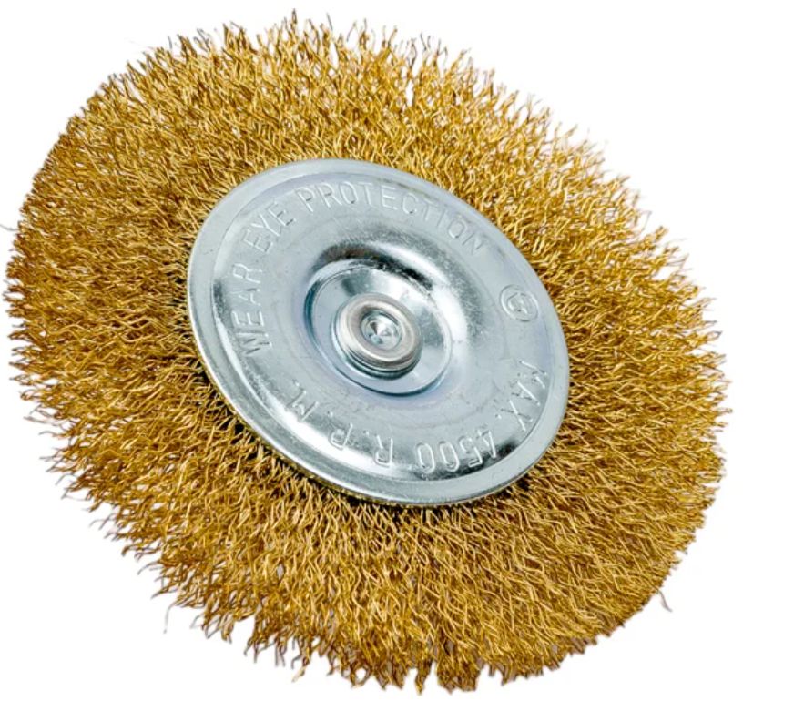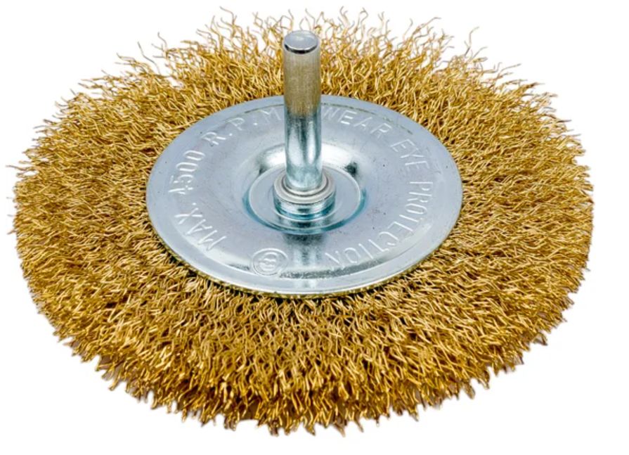 Щётка-крацовка со стержнем 100 мм VOREL 06986 предназначена для очистки, полировки различных поверхностей, а также для удаления ржавчины и чистки инструментов с помощью дрели. Изготовлена из высококачественной латунной гофрированной проволоки.