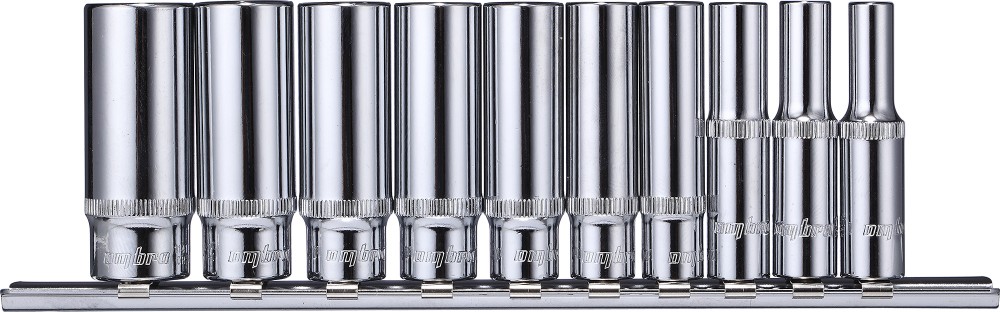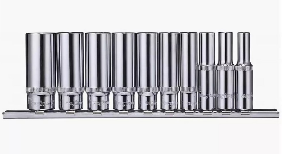 При производстве работ по обслуживанию продукции машиностроения используются различные размеры резьбовых крепежных деталей и мастеру в такой ситуации необходимо иметь несколько инструментов, необходимых для выполнения такой работы. При этом извлечение инструмента требуемого размера из, скажем, кармана комбинезона не всегда доставляет желаемый результат и чем больше обслуживаемых размеров, тем выше вероятность ошибки. В таком случае необходим набор, где каждый инструмент имеет отдельный порт на удобном держателе именуемом "рельс", изготовленном из нержавеющей стали. Подбор инструмента, его хранение и транспортировка такое предложение достаточно просто решает. Головка торцевая глубокая 1/4"DR, 5 мм Головка торцевая глубокая 1/4"DR, 6 мм Головка торцевая глубокая 1/4"DR, 7 мм Головка торцевая глубокая 1/4"DR, 8 мм Головка торцевая глубокая 1/4"DR, 9 мм Головка торцевая глубокая 1/4"DR, 10 мм Головка торцевая глубокая 1/4"DR, 11 мм Головка торцевая глубокая 1/4"DR, 12 мм Головка торцевая глубокая 1/4"DR, 13 мм Головка торцевая глубокая 1/4"DR, 14 мм