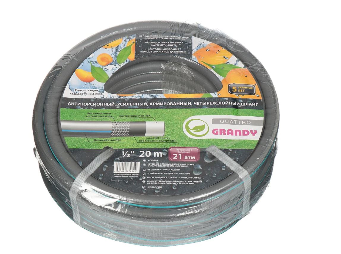 Купить Шланг поливочный1/2 20м армир. 4-хслойный всесезонный GRANDY QUATTRO 282520