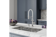 Смеситель с профессиональным изливом станет незаменимым помощником в вопросах приготовления еды и поддержания чистоты в квартире или загородном доме. Его круглая дизайнерская ручка красиво, оригинально выглядит и удобно поворачивается даже мыльной рукой.