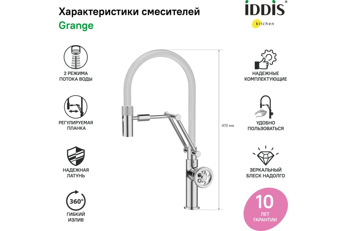 Смеситель для кухни IDDIS Grange с гибким изливом, хром GRASBFLi05 имеет запоминающийся дизайн и яркие, неординарные детали.
