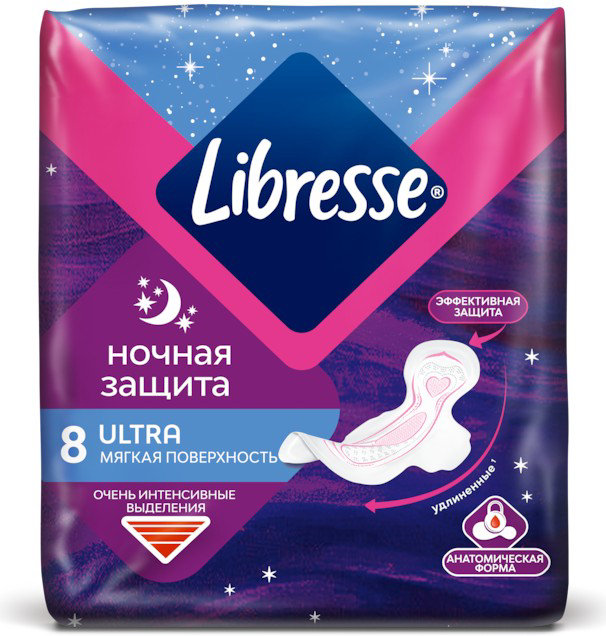 Прокладки женские гигиенические Libresse 8шт night мягкая поверхность 7322541078687